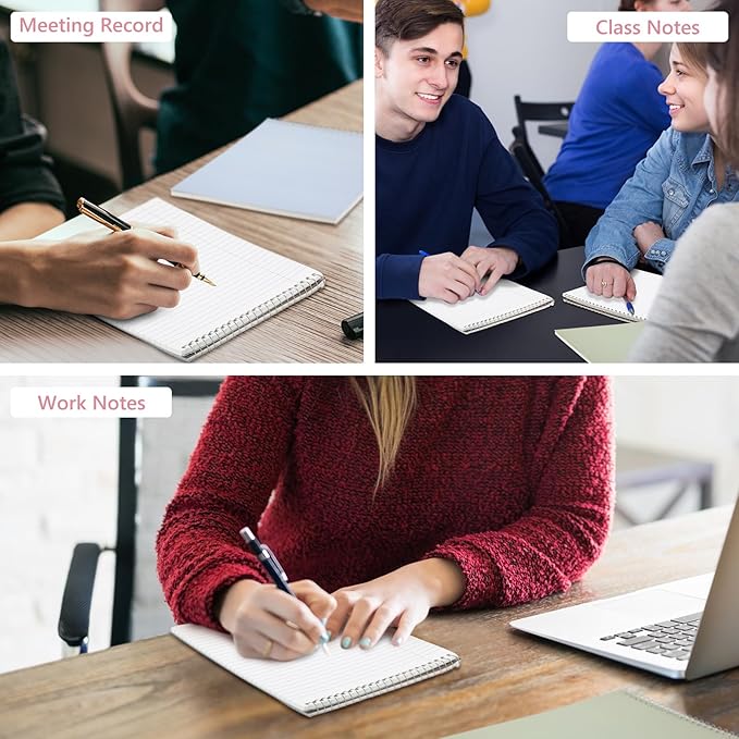 - Spiral Binding: our office steno book is equipped with top spiral binding, featuring a strong metal spiral coil, this design allows you to turn the pages without the worry of unintentional tears smoothly; Additionally, the top bound orientation is ideal for left-handers, eliminating the discomfort of resting your hand in the spiral while writing