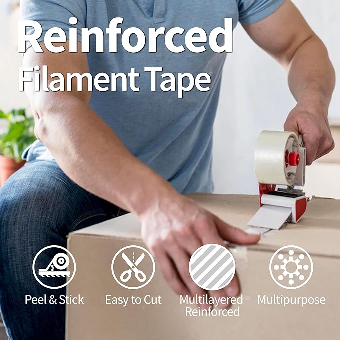 Strapping Tape, 2 Roll 2 Inch X 1260" 5.5 Mil, Fiberglass Heavy Duty Shipping and Moving Packing Tape,Clear
