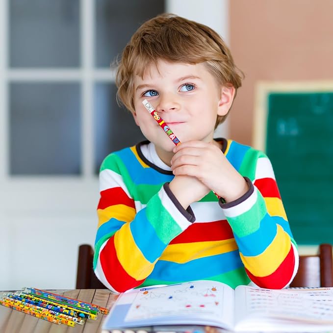 - Cute & Fun DesignsοΌEach pencil is decorated with bright, cheerful patterns, including graduation caps, stars, and fun messages that inspire young learners. Kids will love using these pencils for drawing, writing, and school activities