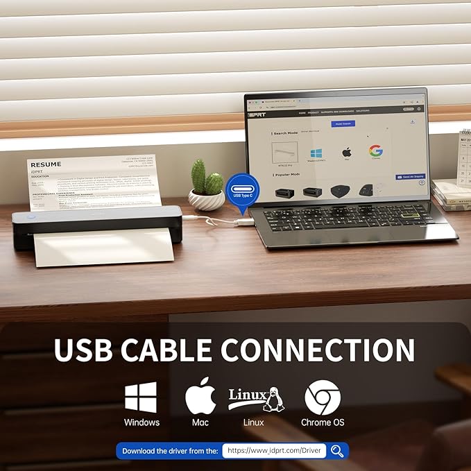 - Long-Lasting Battery: This compact printer features a built-in 2000mAh rechargeable battery, capable of printing up to 240 sheets (approx. 4 hours of continuous use). The small printer for professionals - print contracts, documents and files effortlessly at home, office or in a vehicle
