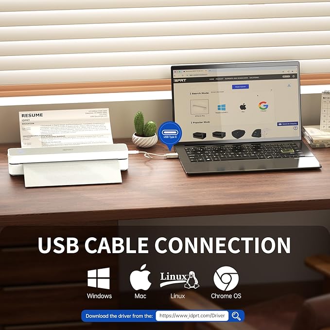 - Long-Lasting Battery: This compact printer features a built-in 2000mAh rechargeable battery, capable of printing up to 240 sheets (approx. 4 hours of continuous use). The small printer for professionals - print contracts, documents and files effortlessly at home, office or in a vehicle