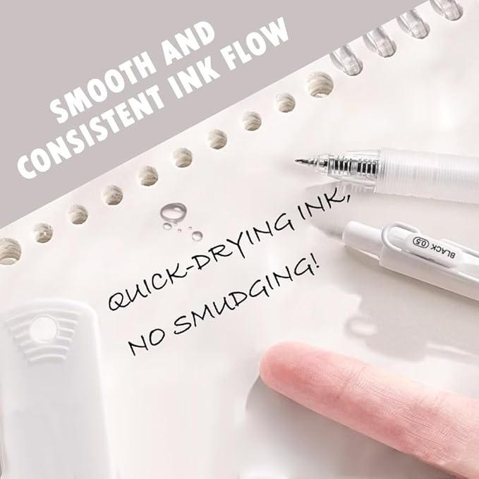 - ใ5 PCS Retractable Gel Pensใ:With a 0.5mm tip, these pens write smoothly. The soft grip makes writing comfortable without fatigue. The ink dries quickly, so it won't dirty your hands, and they can be used for a long time.