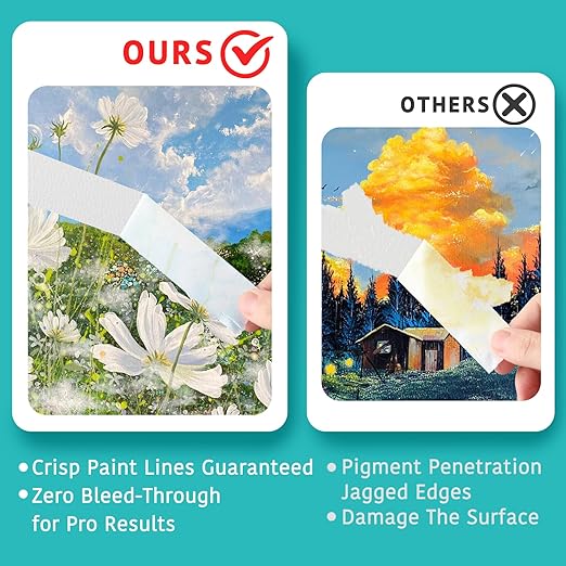 - ✅ Professional-Grade Precision – Achieve crisp lines with white painters tape that resists paint bleed. Perfect as painters tape for edges, canvas art, or framing