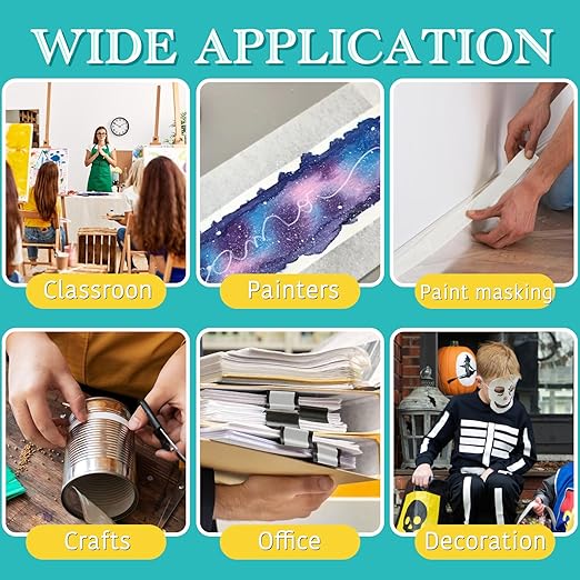 - ✅ Stay Organized & Creative – A must-have white painter tape for home reno, school projects, office labeling, and holiday decor. Store in cool/dry places