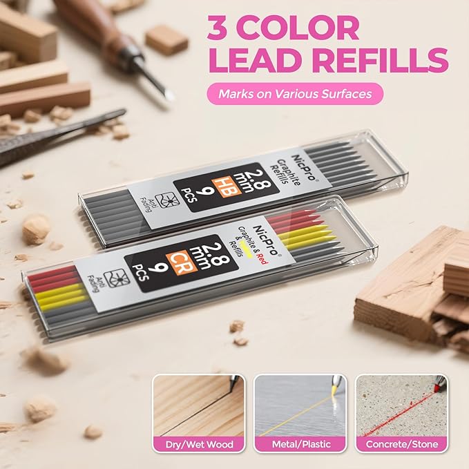 - Marks on Various Surfaces: This work pencil is matched with a 2.8 mm thick color lead, It can mark on almost all surfaces whether dry, damp, smooth, rough or dusty. Making it a standout choice for woodworkers, electricians, and other tradespeople