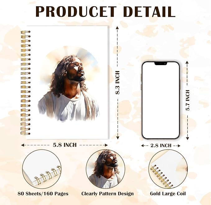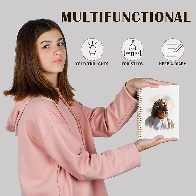 Qabliqo Black Jesus Christian Spiral Notebooks,Afro American Jesus Journals for Writing, Prayer Journal, Christian Gifts for Women Men, Religious Notebook for Note Taking, 5.5x8.3 Inch