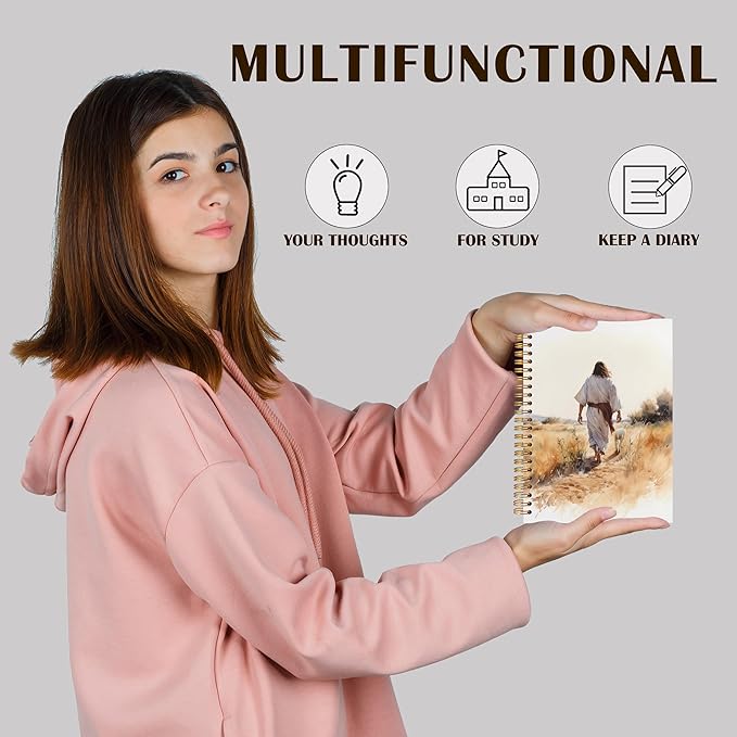 Qabliqo Jesus and Lamb Christian Spiral Notebooks, Rustic Retro Jesus Journals for Writing, Christian Gifts for Women Men, Prayer Journal, Religious Notebook for Note Taking, 5.5x8.3 Inch