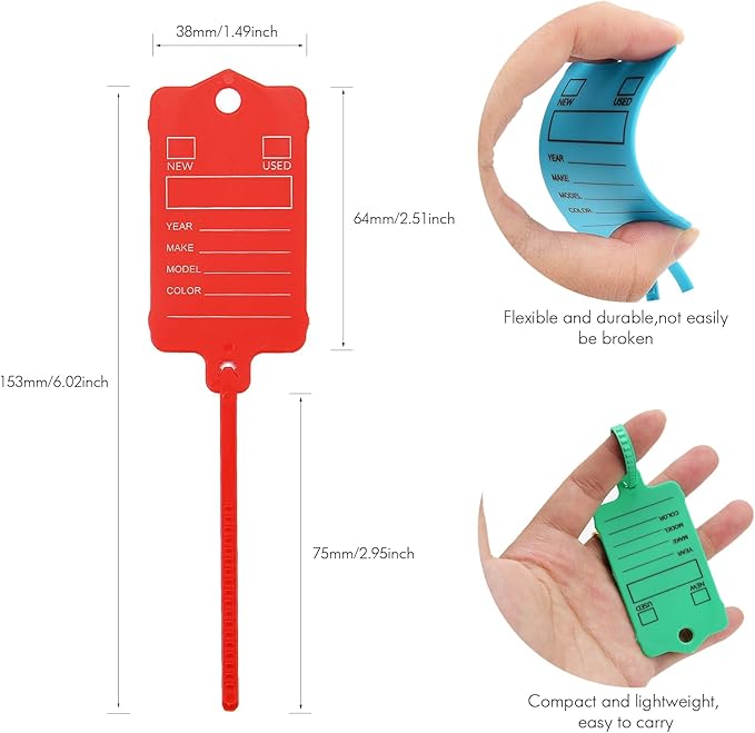 - 【Sturdy and Built to Last】: This auto key tags are made from high quality PP material, sturdy, flexible, water proof, and dust proof, not easy to break or wear. Ensuring they can withstand daily use. Package includes 50pcs mixed key tags and one marker pen