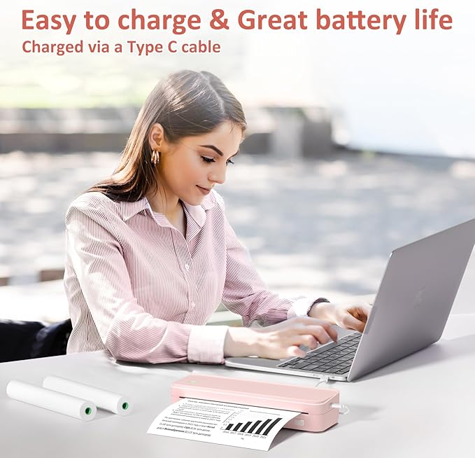 - Inkless Efficiency - Gloryang mobile printer offers cost-effective and inkless printing solutions. Utilizing advanced thermal technology eliminates the need for ink, toner, or ribbons. The package includes a printer, 3 rolls of thermal printing paper(one roll in the printer & extra 2 rolls), a carrying case, a charging cable, instruction manual, and a guide card, etc. Only compatible with Gloryang/Jadens thermal paper, not compatible with Phomemo brand thermal paper or inkjet/laser paper!!