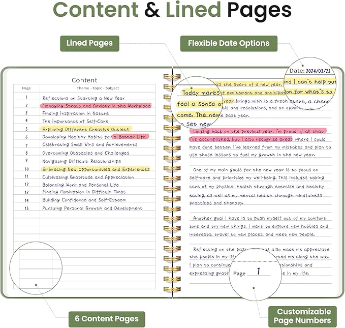- High-Quality Paper: Each notebook is crafted with 100 GSM thick, ink-friendly paper, preventing ink bleed-through and ghosting. Compatible with various writing instruments, including ballpoint, gel, and fountain pens, every page includes a day header for effortless date tracking.