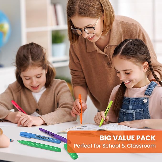 - Big Value Pack - Includes 96 vibrant highlighters in 6 assorted colors—pink, orange, yellow, green, blue, and purple. Easily color-code notes and materials for better organization, making it ideal for both study and work.