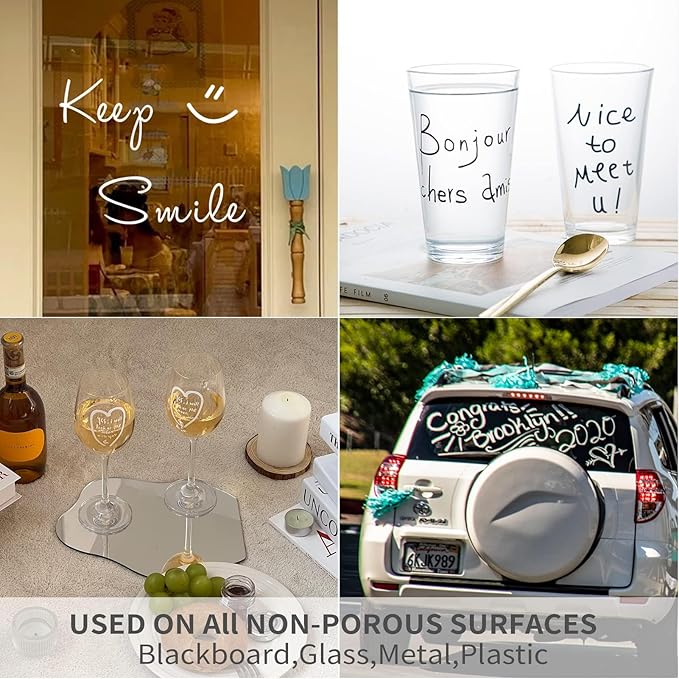 - Easy to Clean Wet Erase Formula — Dust-Free & No Residue — Effortlessly wipes off with a damp cloth from any non-porous surface like classroom chalkboards, glass windows, mirrors, and metal signs, leaving no ghosting or dust behind for a tidy learning environment.
