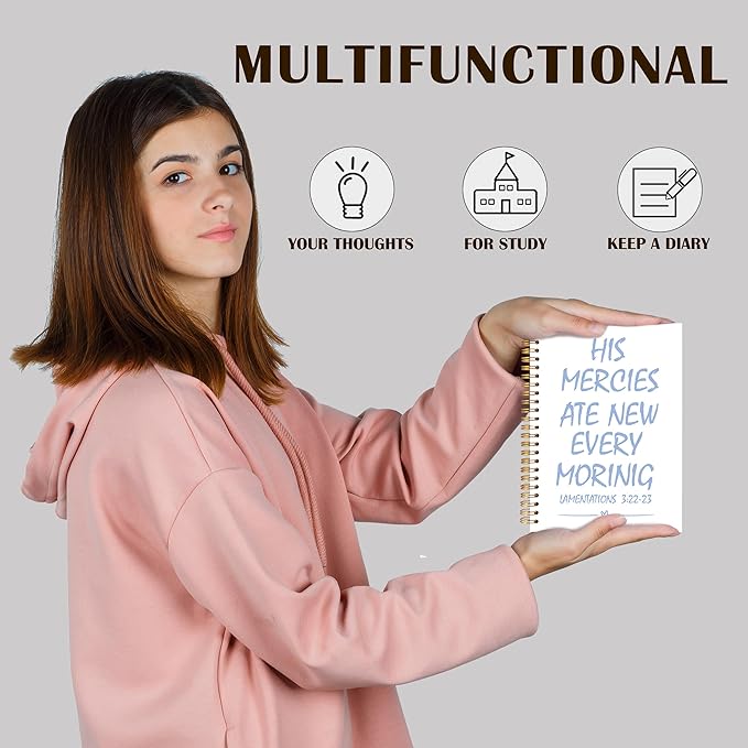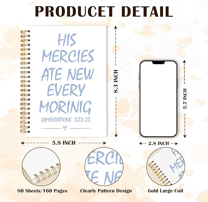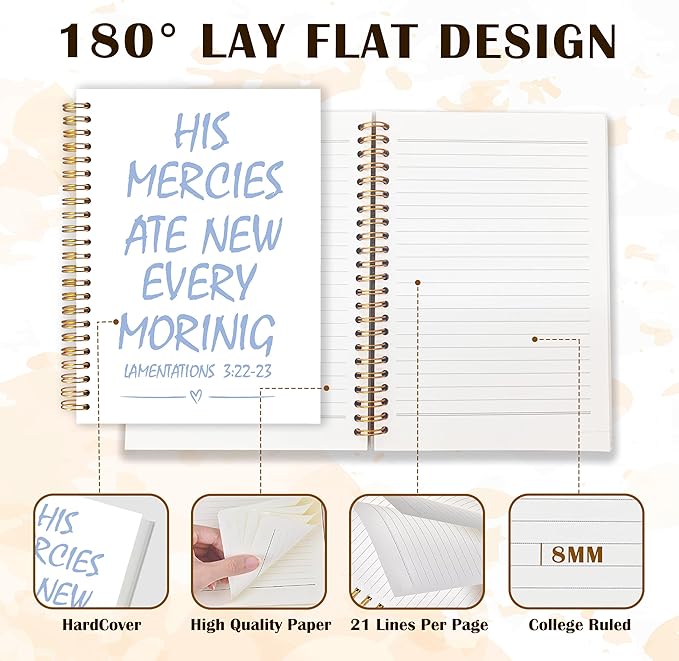 Qabliqo Trendy Blue Christian Spiral Notebooks, His Mercies Are New Every Morning Bible Journal, Religious Scripture Journals for Writing, Bible Verse Notebook for Note Taking, 5.5x8.3 Inch