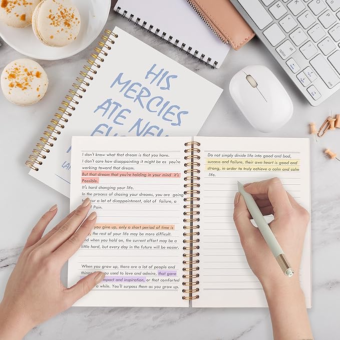 - Size and Construction: Measures approximately 5.5 x 8.3 inches. Comes with a hardcover and spiral binding, making it easy to open flat and write comfortably.