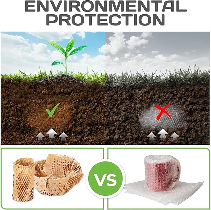 - ECO-FRIENDLY AND SUSTAINABLE β Our honeycomb packing paper is made from PEFC-certified Canadian paper that is 100% sustainable and replaces traditional plastic and bubblewrap for packing, offering an environmentally-friendly solution without compromising on protection for fragile items during shipment.