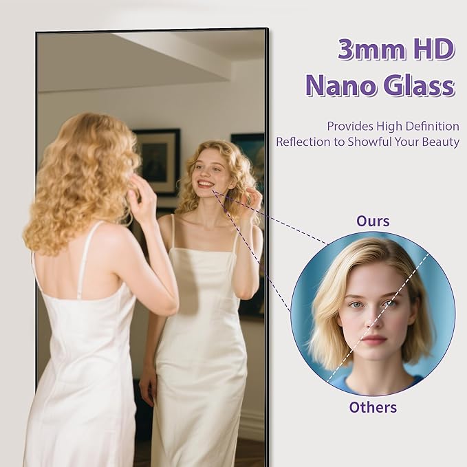 Full Length Mirror, 76"x34" Oversized Floor Mirror Freestanding, Full Body Mirror Floor Standing Mirrors with Stand, Hanging Mounted Mirrors for Bedroom Living Room, Black, Rect Style