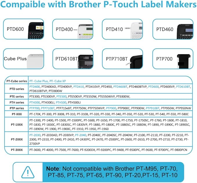 - Precision Compatibility: Engineered for PTouch 18mm/0.75" tape systems, including: PT-D400/D600, PT-P700/P750W, PT-E500, PT-1830/1880, PT-2430PC, PT-2730, PT-D610BT (full list in description)