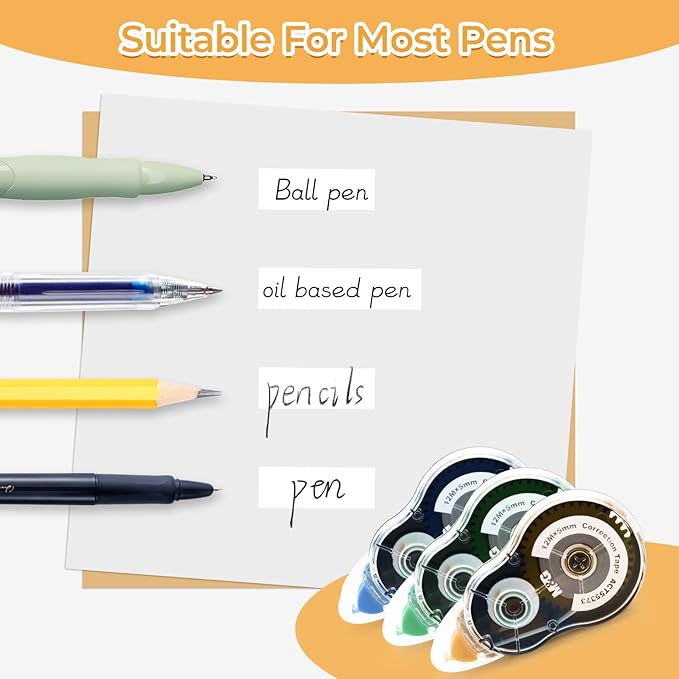 - Easy To Use:Just hold the correction tape at a 45 degree angle to the paper surface, press lightly and drag the tape back to completely cover the surface to be modified.