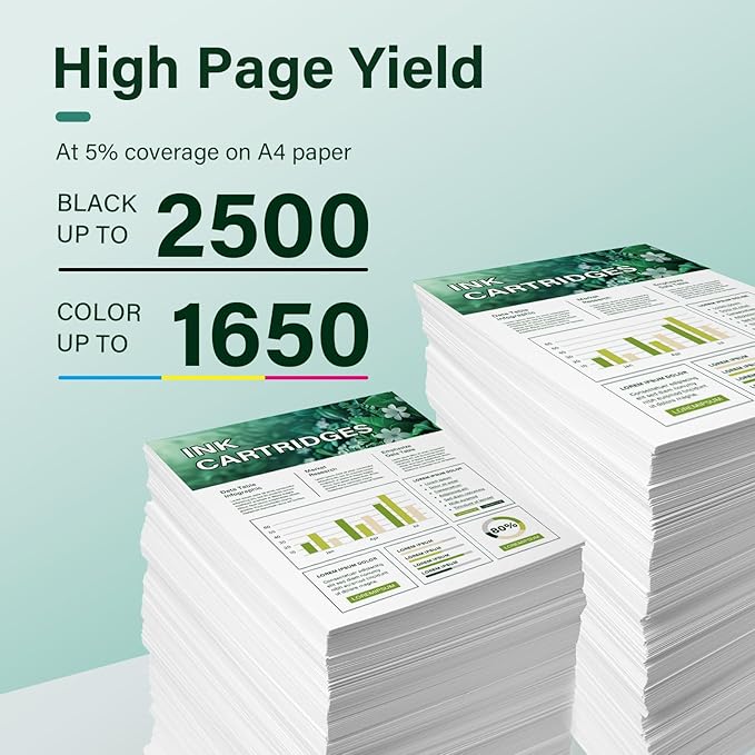 - High Page Yield: It yields up to 2,500 pages for each 936XL Black Ink and 1,650 pages for each 936XL Color Ink at 5% coverage (A4e letter)