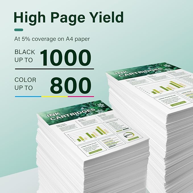 - High Page Yield: It yields up to 1,000 pages for each 923XL Black Ink and 800 pages for each 923XL Color Ink at 5% coverage (A4e letter)