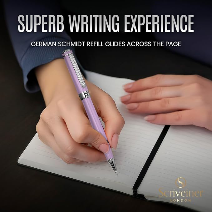 Scriveiner Lavender Rollerball Pen - Stunning Luxury Pen With Chrome Finish, Schmidt Ink Refill, Best Roller Ball Gift Set for Men & Women, Professional, Executive Office, Nice Pens