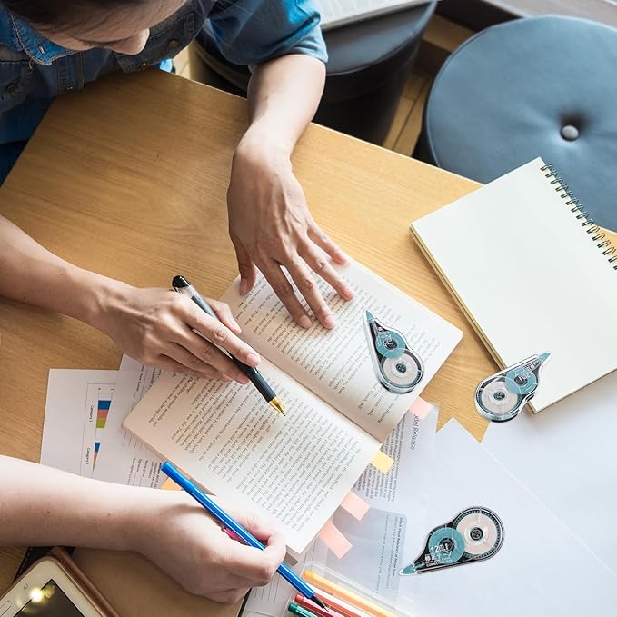 - 【Rewriting immediately】You can write over it instantly. fast and clean, does not damage papers or documents, and leaves no copy shadows.Each correction tape comes with a top cover that you can put on after use to avoid the white tape inside from getting dirty, considerate, and simple