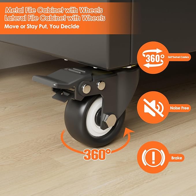 Aobabo Metal 2 Drawers Lateral File Storage Cabinet and Unit Adjustable Shelf Organizer, 2 Door Storage Office Steel Files Cabinet with Wheels, Legal/Letter A4 Size, Assembly Required, Black