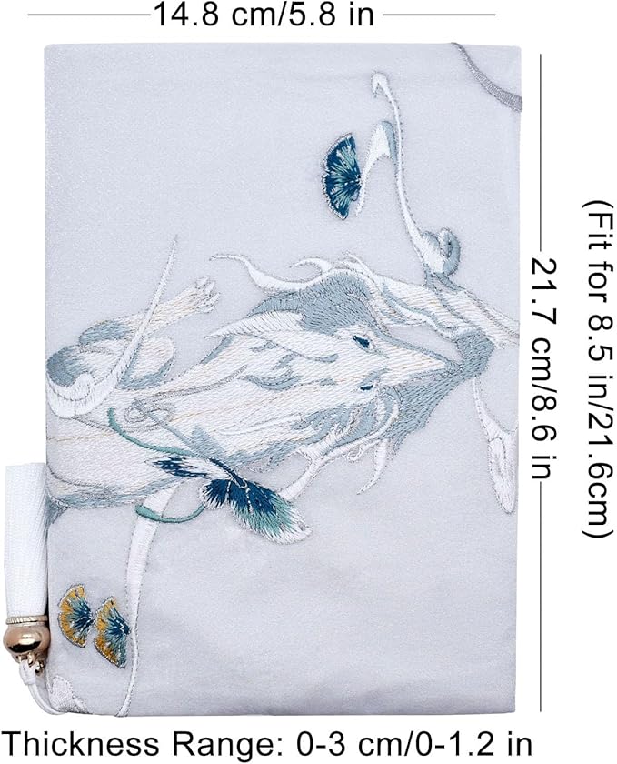 - 【Book Cover Dimensions】 Length: 22 cm/8.6 in(Fits 8.5-inch long books), Width: 14.8 cm/5.8 in,Thickness Range: 0-4 cm/0-1.62 in.Suitable for books, hardcover novels, and scrapbooks. Please ensure the book size is smaller than the cover size and not too thick for the cover. Check dimensions before buying.
