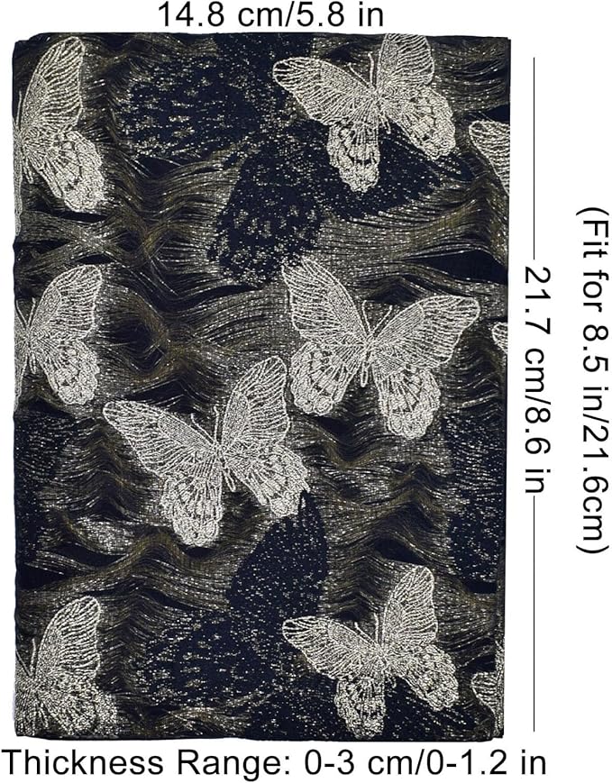 - 【Book Cover Dimensions】 Length: 22 cm/8.6 in(Fits 8.5-inch long books), Width: 14.8 cm/5.8 in,Thickness Range: 0-4 cm/0-1.62 in.Suitable for books, hardcover novels, and scrapbooks. Please ensure the book size is smaller than the cover size and not too thick for the cover. Check dimensions before buying.