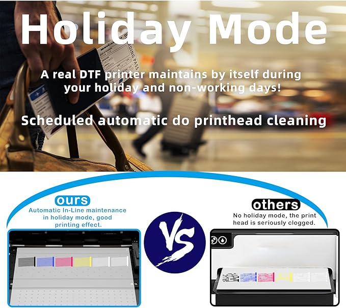 - ✅ 【Holiday Mode】 Experience worry-free operation with Smart Holiday Mode – your printer auto-maintains ink flow during breaks, vacations, or storage. Say goodbye to clogged nozzles! Engineered for entrepreneurs who value reliability and seamless restarts.