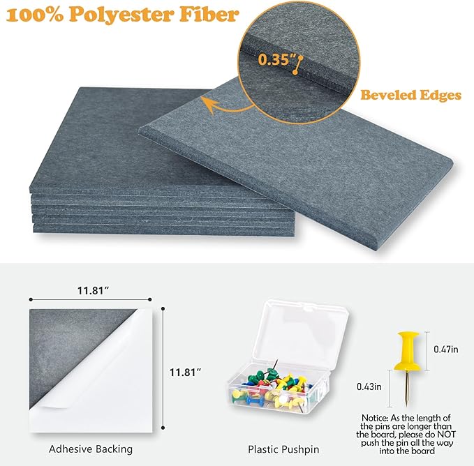 - CUSTOM SIZED BULLETIN BOARD - Comes with 6 packs wall panels measures 11.8" x 11.8", the large pushpin board can be customized to any size you need