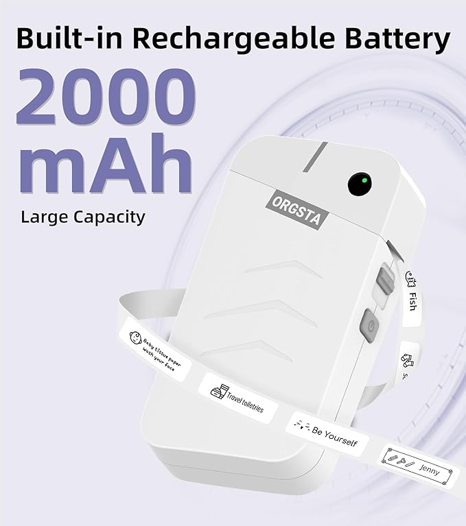 - High-Quality Printing: The ORGSTA label maker utilizes direct thermal printing technology and offers 203 DPI high-resolution printing, enjoy high-definition printing without the need for ink or toner; Laminated labels are clear, waterproof, oil-proof, scratch-resistant, and easy to tear, leaving no residue after removal