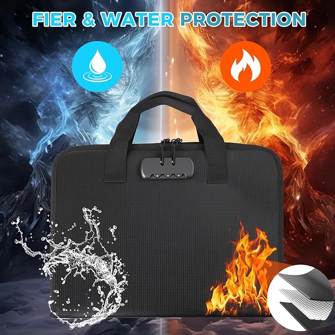- High-Quality Materials:Fireproof expanding file organizer made of 3-layered silicone-coated fiberglass, withstands extreme temperatures up to 2500β has passed SGS testing(UL94 certified). Protects important documents from fire, flood, and wet weather conditions