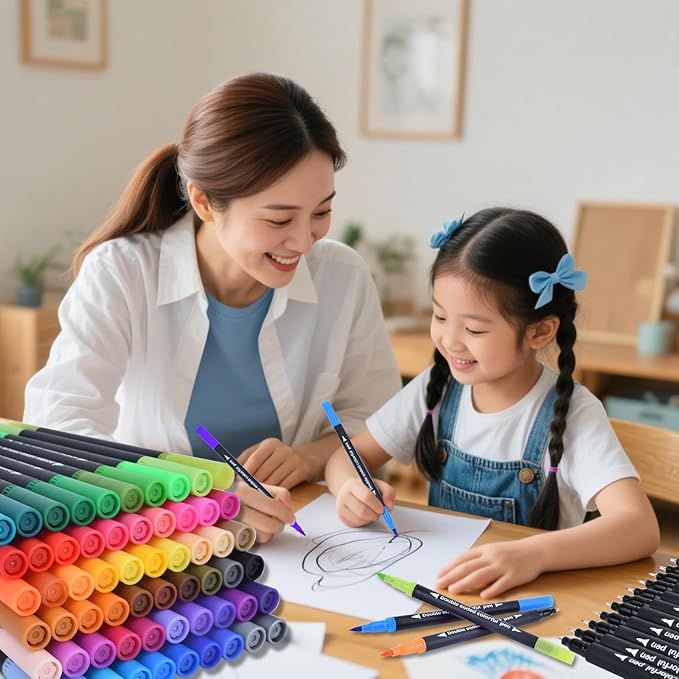 - DUAL TIP DESIGN: Precise 0.4mm fineliner for detailed outlining and precise details; 1-2mm felt tip markers for expressive strokes; seamlessly switch between different techniques without changing pens. Perfect for calligraphy, illustrations, and intricate adult coloring books