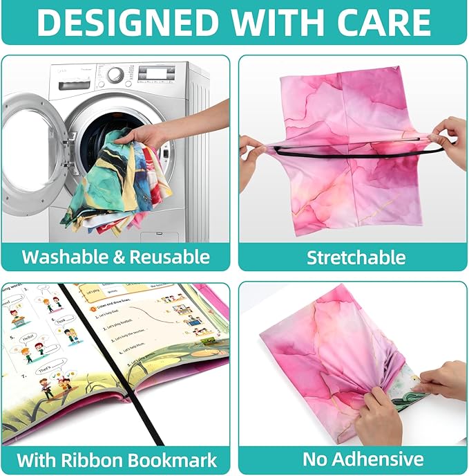 • 9 Marble Fabric Book Covers – Includes 9 covers with unique marble patterns. Stylish, colorful, and easy to tell your books apart.