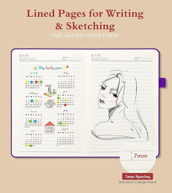 - 【180° Lay-Flat Binding for Effortless Writing】:The journal’s lay-flat design allows full-page access, making writing, reading, or note-taking comfortable for both left- and right-handed users. No more curled pages—perfect for extended writing sessions in meetings, classes, or while traveling.