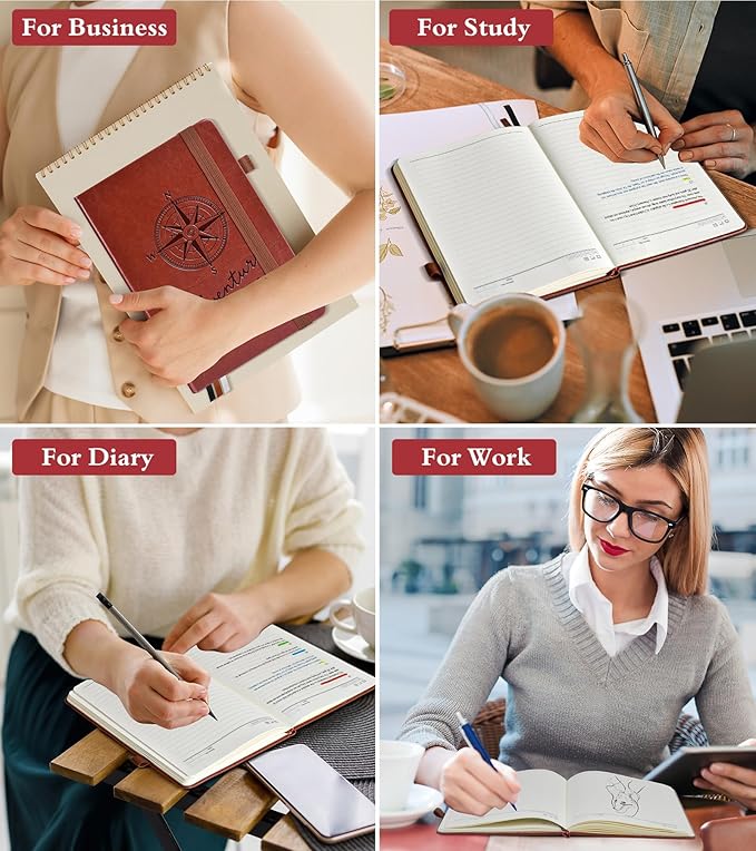- 【180° Lay-Flat Binding for Effortless Writing】:The journal’s lay-flat design allows full-page access, making writing, reading, or note-taking comfortable for both left- and right-handed users. No more curled pages—perfect for extended writing sessions in meetings, classes, or while traveling.