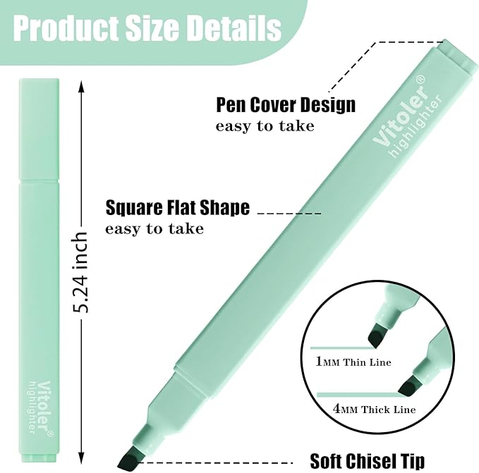 Vitoler Highlighters Assorted Colors,8 Pack,Soft Chisel Tip,Cute Highlighters Set for Aesthetic School Office Supplies,Book Markers