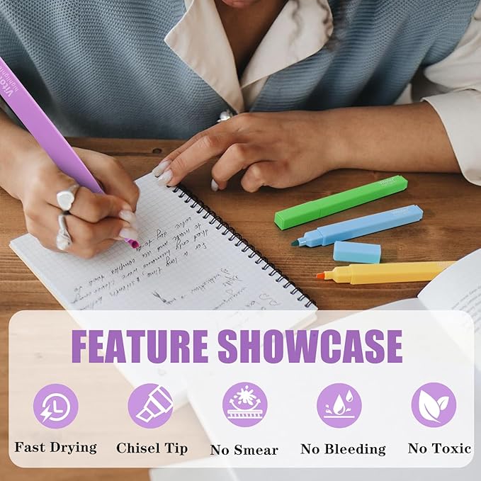 - Multi- Applications & Great Gift:The highlighters package is a great choice for school supplies or office supplies,also suitable for college, home, office, even travel diary, schedule, work, study, notes, etc. These aesthetic highlighters are also wonderful gifts for teachers, classmates, bosses, coworkers and so on.