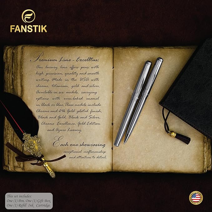 Customized Silver Luxury fountain pen (Made In USA) fancy gift set for women, Chrome Finish, Professional executive pen gift set for men (Lux Custom-fountain Silver)