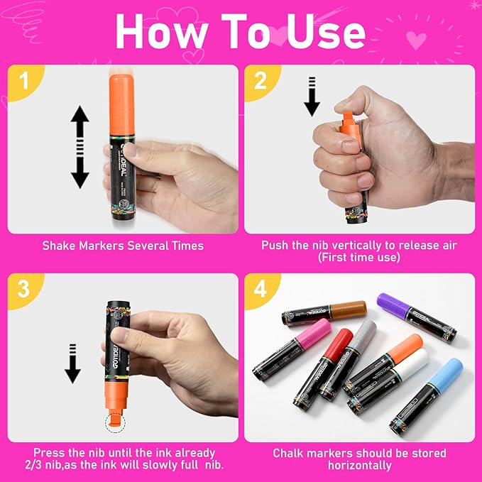 - EASY TO CLEAN - GOTIDEAL liquid chalk pens will keep your design in perfect condition,non-toxic,water-based liquid chalk markers can be erased easily by wiping the area with a damp cloth or paper towel.
