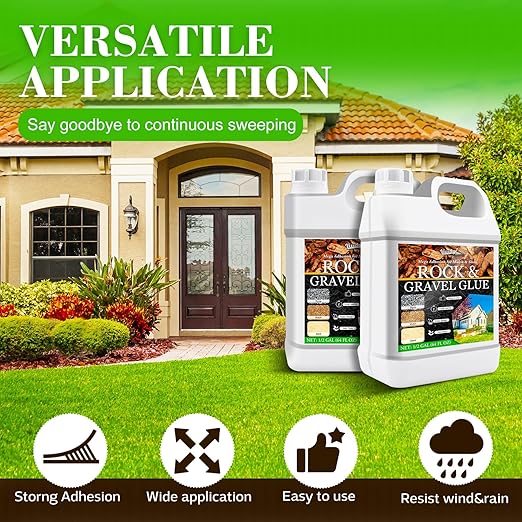- Easily holds application - This ready-to-use mulch adhesive simplifies landscape projects. For heavy materials (pea gravel or rock), our gravel binder can be used directly. For lightweight mulch (straw or leaves), mix 10:1 with water (do not exceed 1 part water), shake, and apply via sprayer or watering can. Apply 2-3 thin coats on dry surfaces for optimal hold. Itβs perfect for gardens, driveways and walkways, securing rubber mulch and gravel with 12-24 month hold - ideal Landscaping Glue.