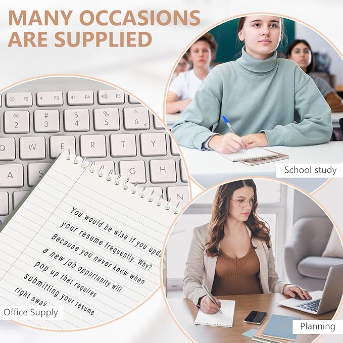 - Wide Application: with their attractive colored covers, these spiral note pads can serve multiple purposes; Whether you use them as study notes, a personal diary, a sketchbook, a travel diary, or work notes; These notebooks are suitable for a variety of contexts such as office, travel, reports, and translation