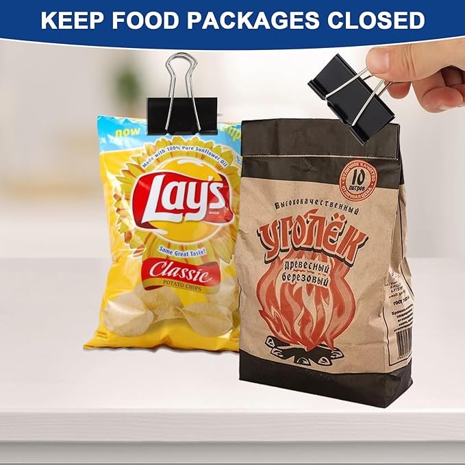 • Why You Need It - Binder clips keep large stacks of loose paper securely fastened together and keep all foods air closed