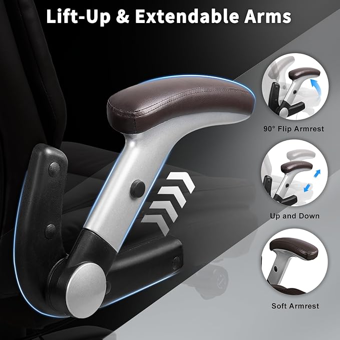 - 【Lift-Up Armrests - Space-Saving & Convenience】: This ergonomic high-back office chair features adjustable armrests that allow you to enjoy maximum relaxation while occupying minimal space. The armrests can be easily adjusted during use and conveniently tucked away when not needed, creating more room and facilitating movement. Whether you're typing, writing, or taking a break, our comfy high back heavy duty office chair ensures a satisfying seating experience.