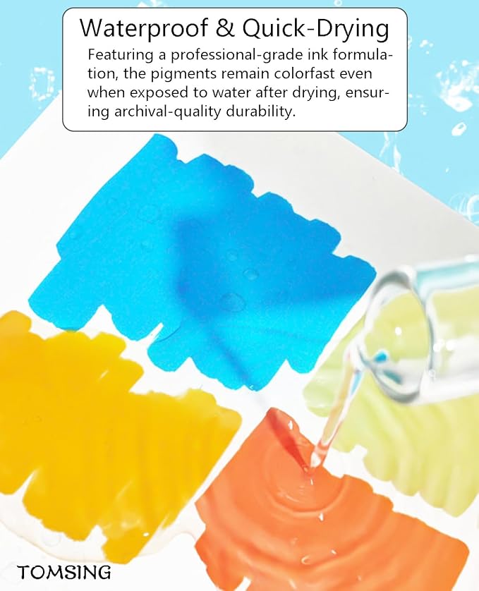 - 【Quick-Drying with High Coverage】Vivid, highly saturated colors with excellent coverage that dry quickly. Allows easy layering while being waterproof and lightfast, resisting fading. No bleeding or show-through on paper.