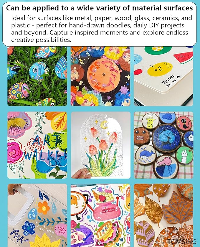 - 【multipurpose】 Paint markers for canvas, paint pens for wood, paint markers for plastic—these acrylic markers can even be used as tire track paint markers! The canvas paint pens work on most surfaces, including rocks, metal, ceramics, cardstock, clay, and vinyl!