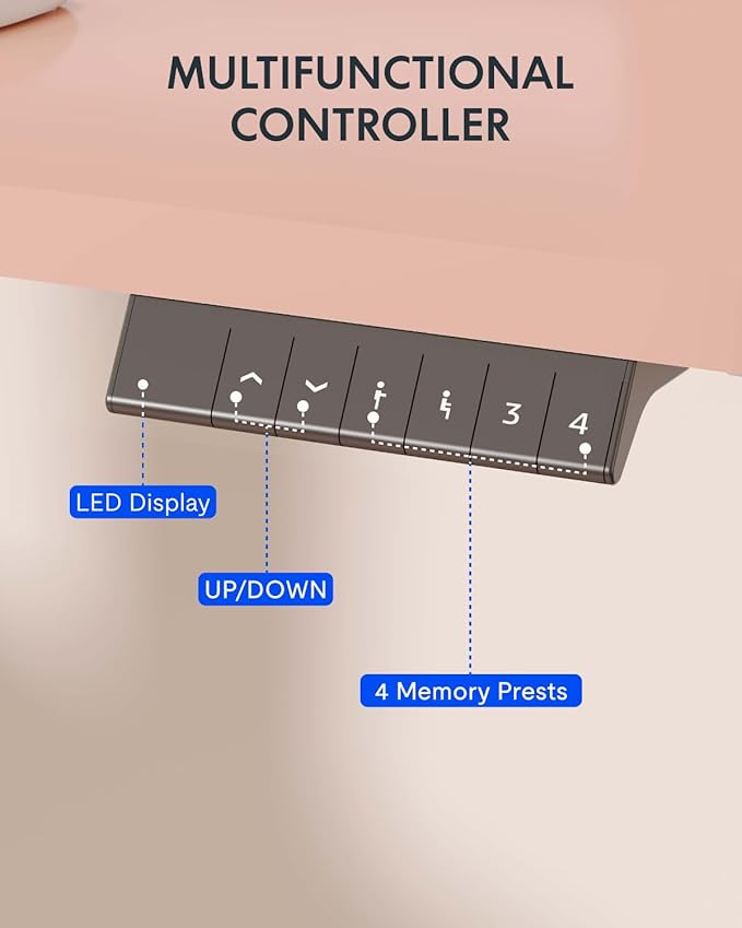 - 4 MEMORY PRESETS: Easily store and recall different height settings with our multifunctional memory system. Effortlessly switch between sitting and standing to reduce the risk of health issues like back and neck pain caused by prolonged sitting.