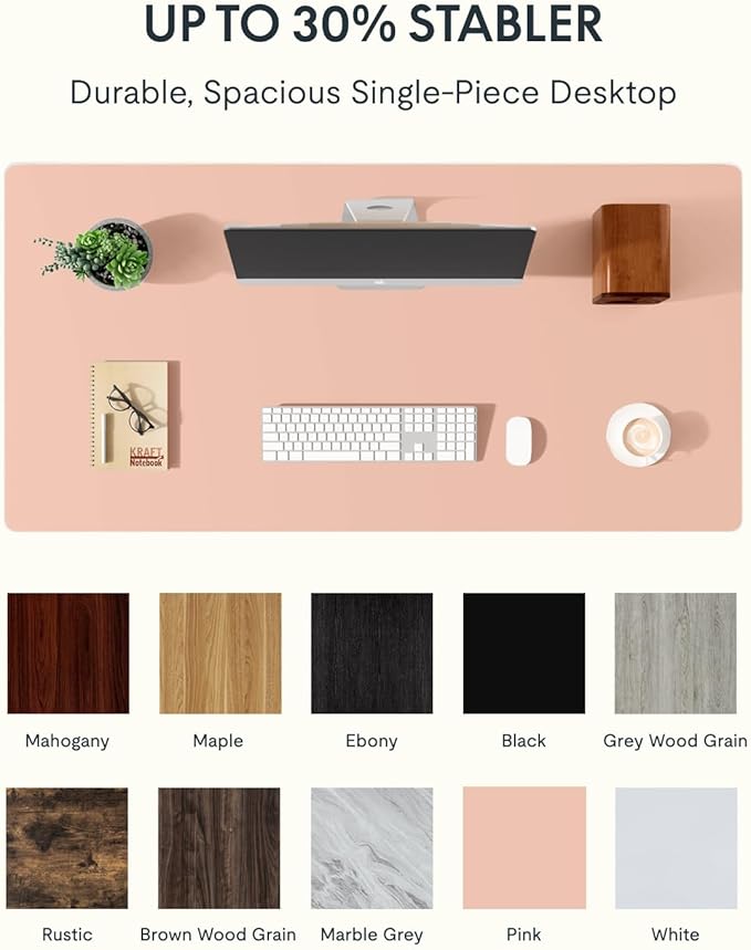 FLEXISPOT EN1 One-Piece Standing Desk, 48 x 24 Inches Electric Height Adjustable Desk for Home Office (White Frame + Pink Desktop)