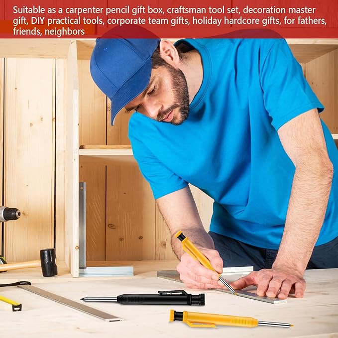 - Practical Design: deep hole pencil: the carpenter pencil has a 45 mm long extended nose, which allows you to work in hard-to-reach areas, suitable for marking deep holes or other narrow areas, and the metal tip is strong enough for long-term use [Portable clip design]: our deep hole construction pencil adopts a portable clip design, becoming a convenient tool to carry with you